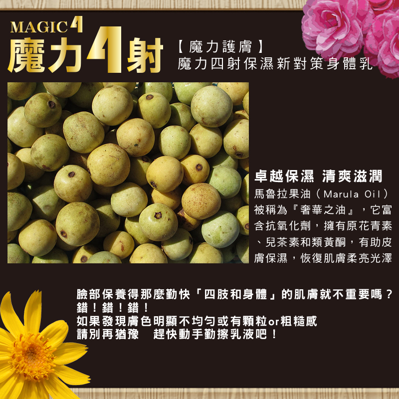最近媽媽生日快到了,偷偷打聽後知道媽媽最近想買 【本日刷卡購物折扣】【買一入送一入】魔力4射保濕新對策身體乳 任選-大家都搶買
